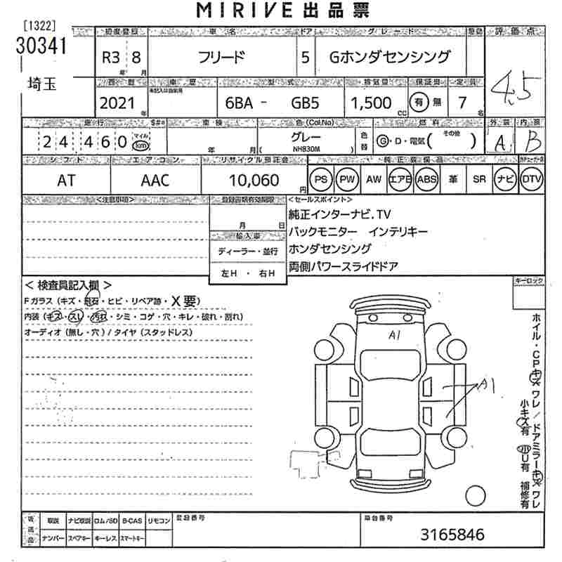HONDA FREED 2021 г., лот № 30341
