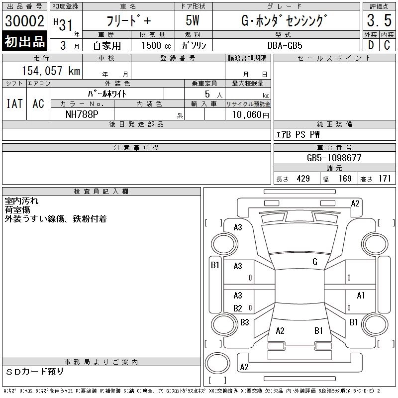 HONDA FREED+ 2019 г., лот № 30002