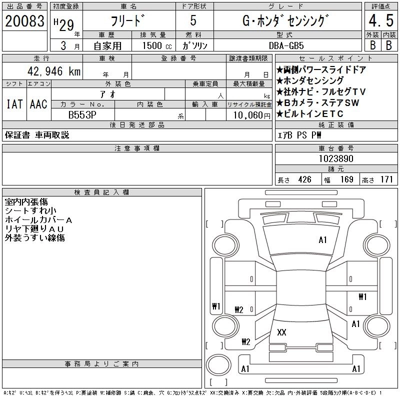 | G HONDA SENSING | DBA-GB5 | L15B | FF | CVT | 1496cc | 131ps(96kW)/6600rpm | AИ-92 | 2 100 000 | |