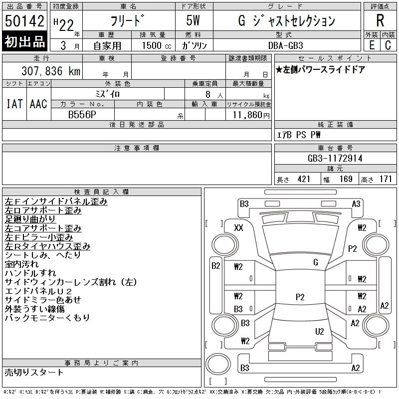 | GI AERO | DBA-GB3 | L15A | FF | CVT | 1496cc | 118ps(87kW)/6600rpm | AИ-92 | 2 492 000 | |