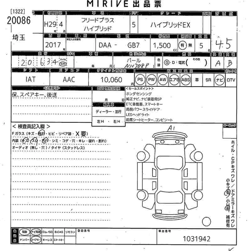 HONDA FREED+ 2017 г., лот № 20086