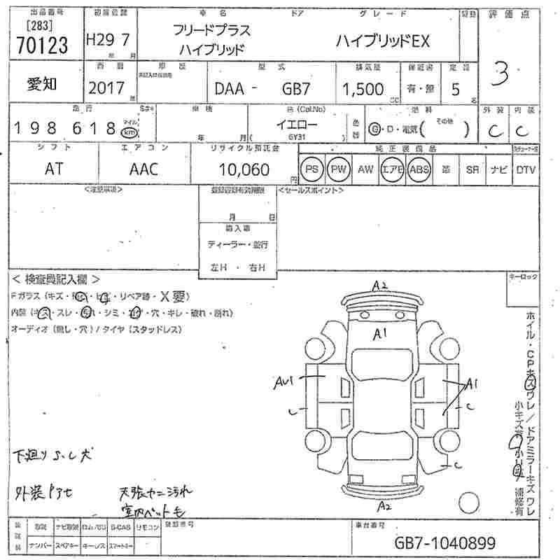 HONDA FREED+ 2017 г., лот № 70123