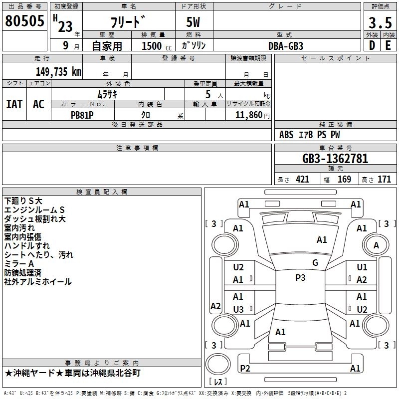 | G JUST SELECTION | DBA-GB3 | L15A | FF | CVT | 1496cc | 118ps(87kW)/6600rpm | AИ-92 | 1 850 000 | |