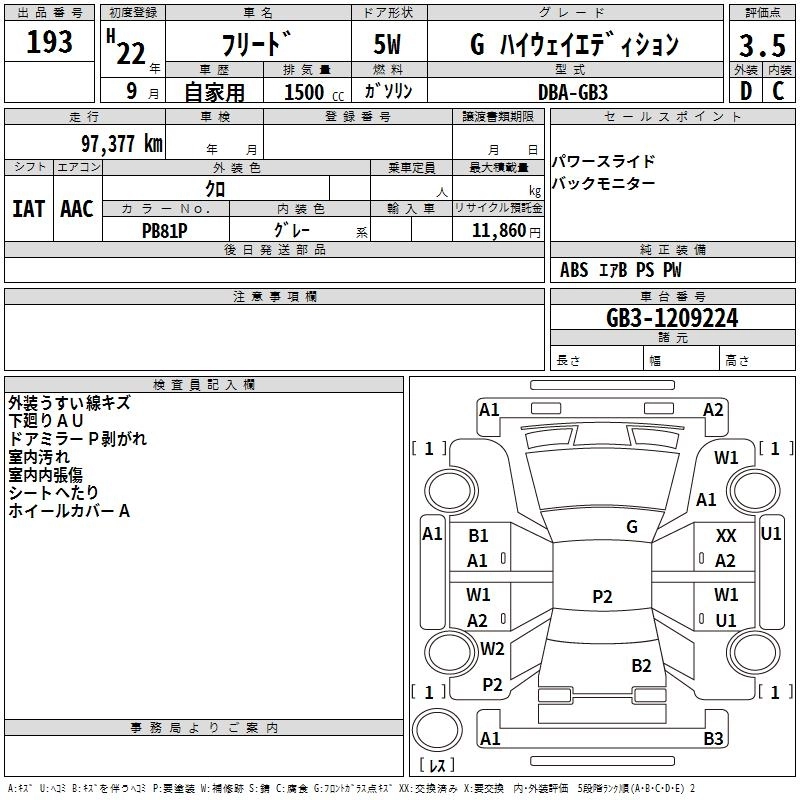 | G AERO | DBA-GB3 | L15A | FF | CVT | 1496cc | 118ps(87kW)/6600rpm | AИ-92 | 2 013 000 | |