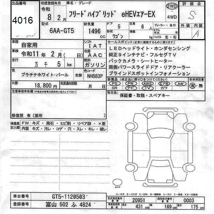 Статус выставлен на аукцион Лот 4016 Аукцион JU Toyama Дата аукциона 19.03.2026