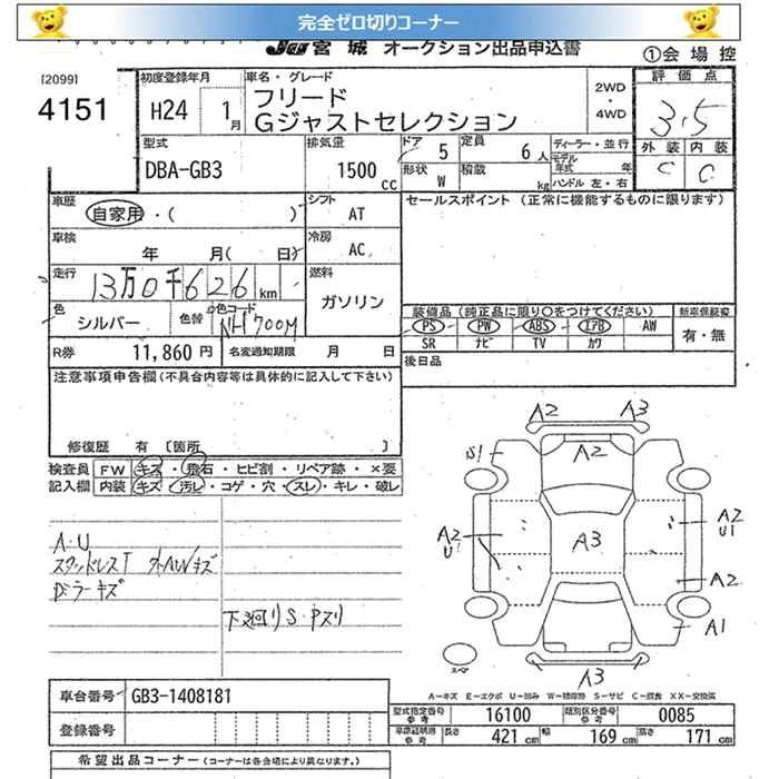 | G AERO | DBA-GB3 | L15A | FF | CVT | 1496cc | 118ps(87kW)/6600rpm | AИ-92 | 2 100 000 | |