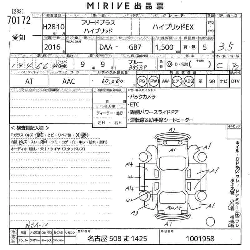 HONDA FREED+ 2016 г., лот № 70172