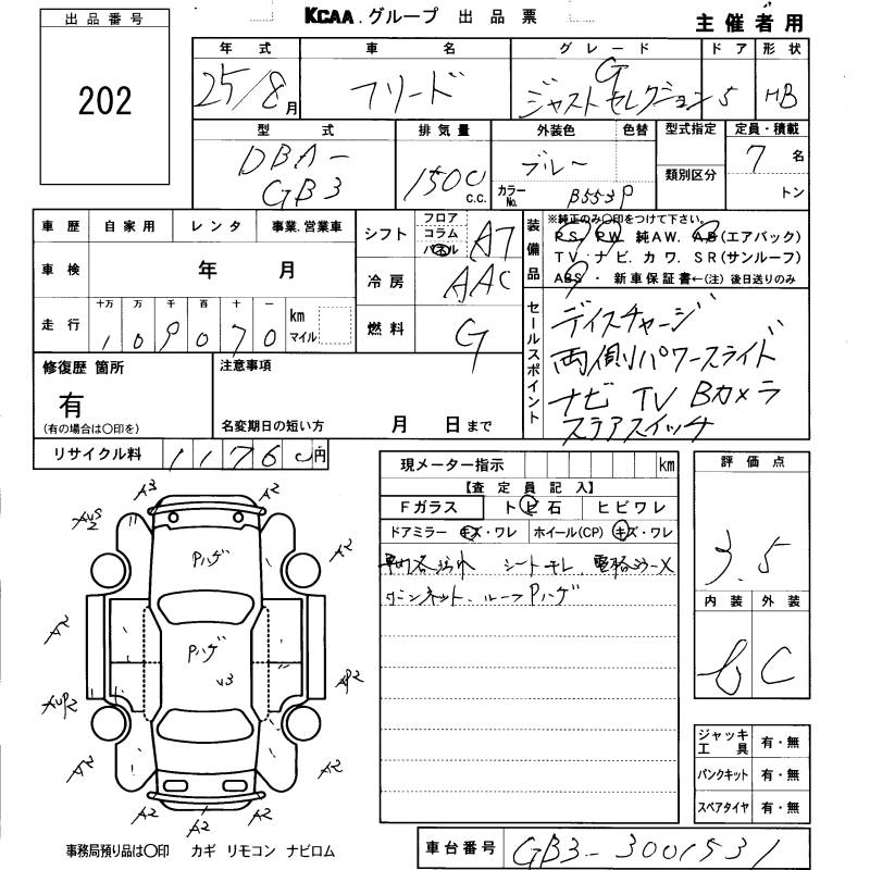HONDA FREED 2013 г., лот № 202