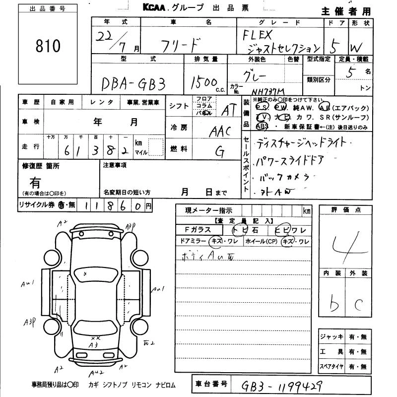 HONDA FREED 2010 г., лот № 810