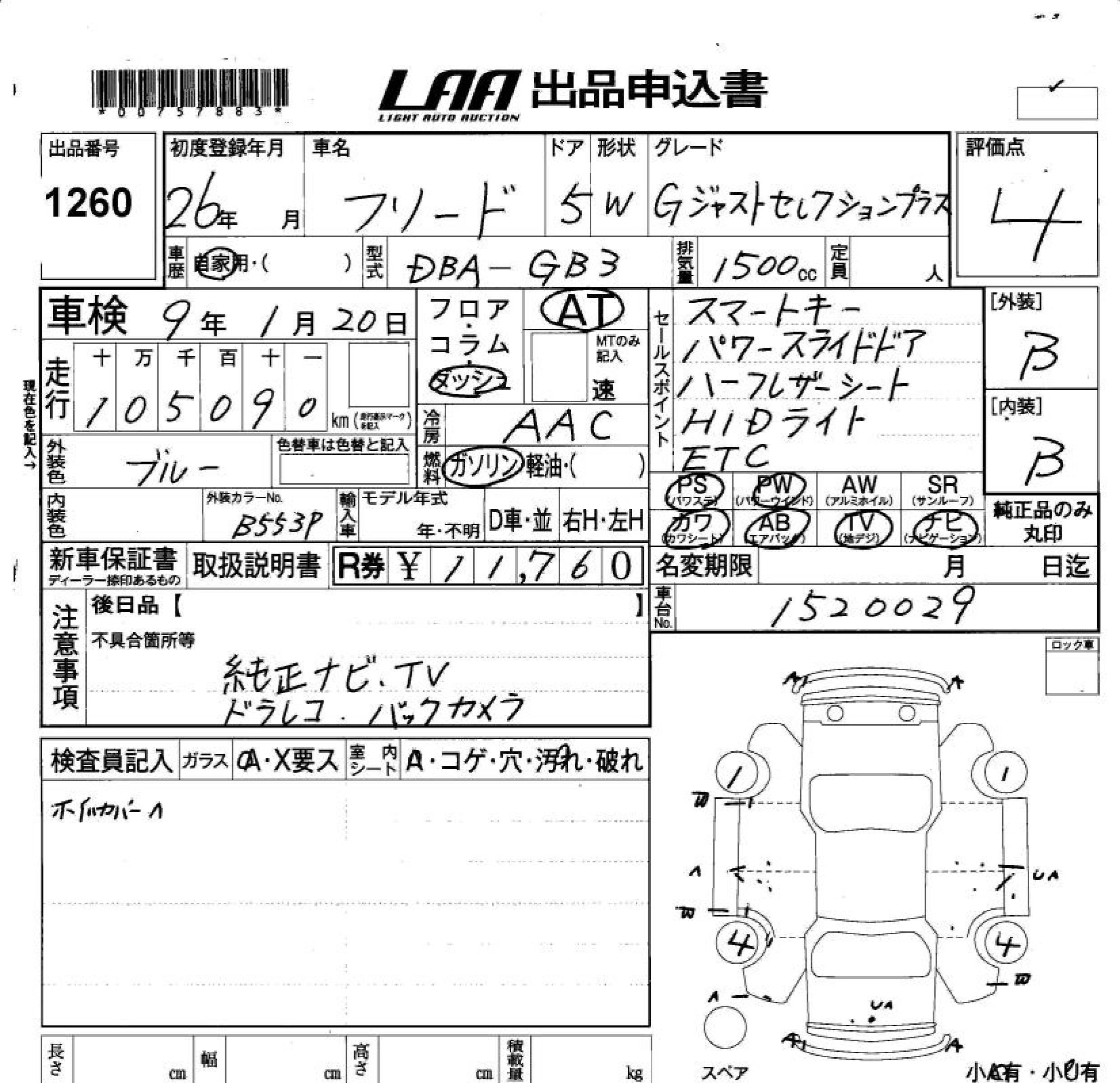 Статус выставлен на аукцион Лот 1260 Аукцион LAA Okayama Дата аукциона 20.03.2026