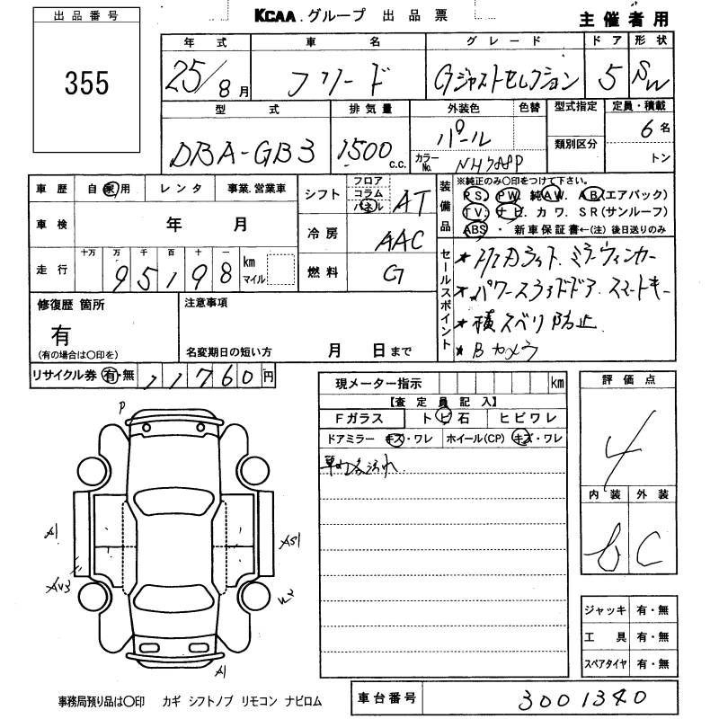 HONDA FREED 2013 г., лот № 355