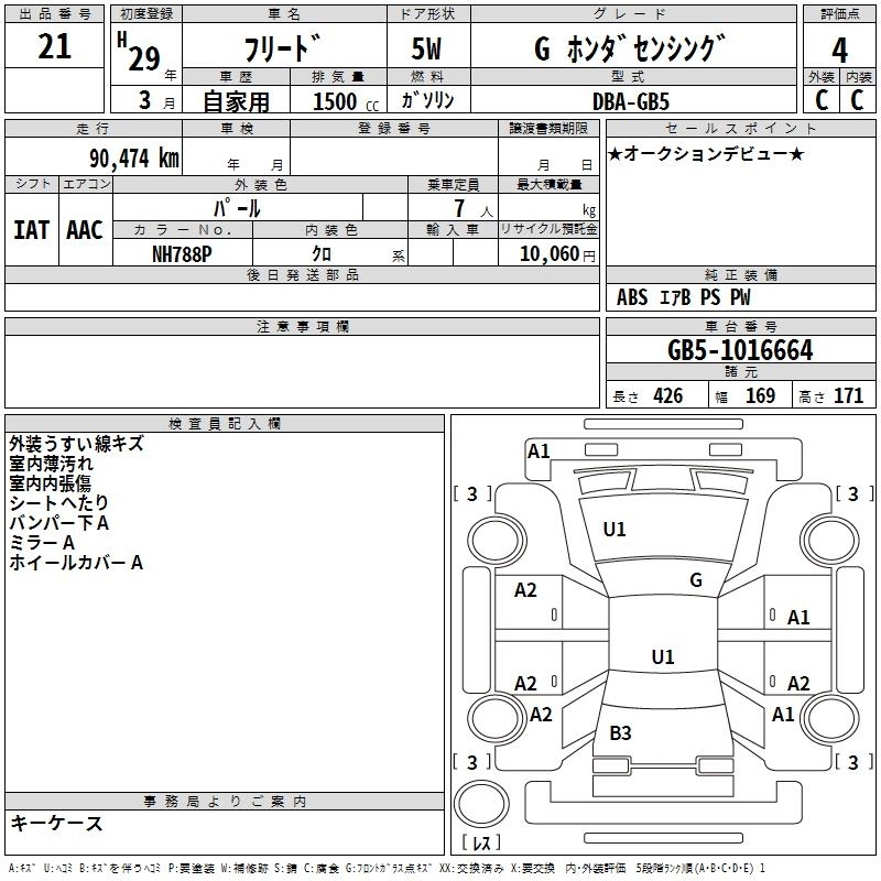 HONDA FREED 2017 г., лот № 21