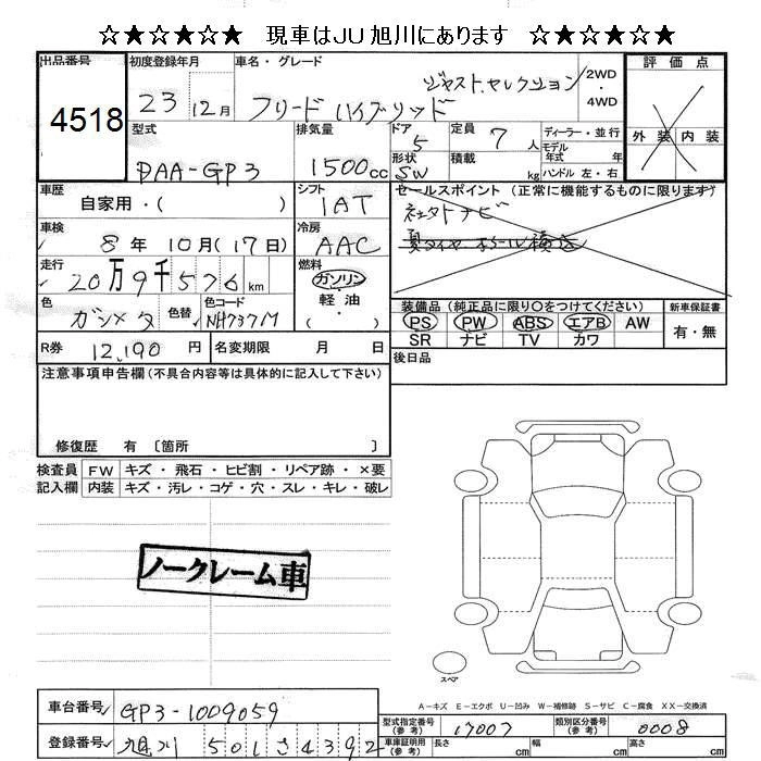 | G JUST SELECTION | DBA-GB3 | L15A | FF | CVT | 1496cc | 118ps(87kW)/6600rpm | AИ-92 | 1 850 000 | |