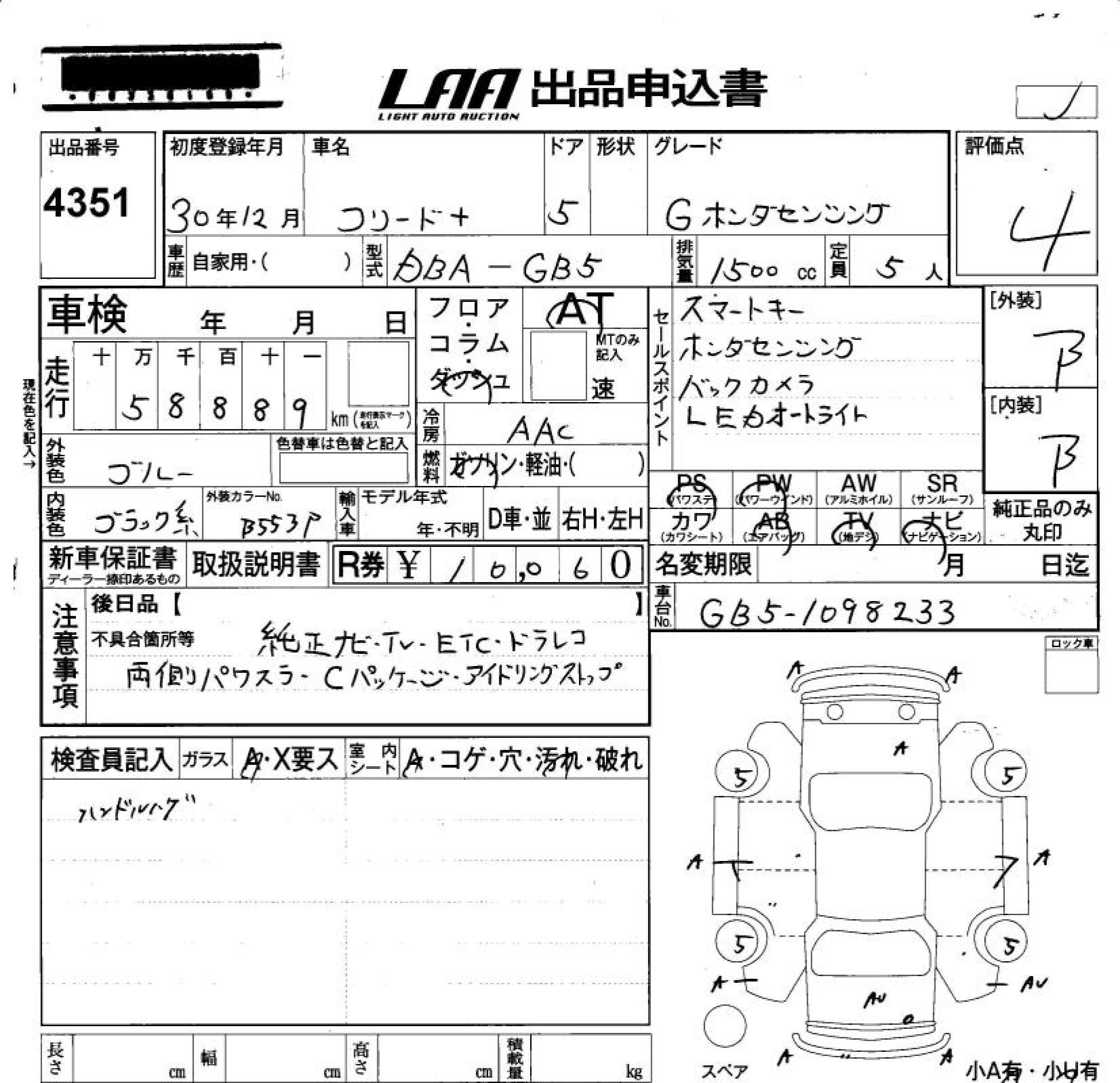 HONDA FREED+ 2018 г., лот № 4351
