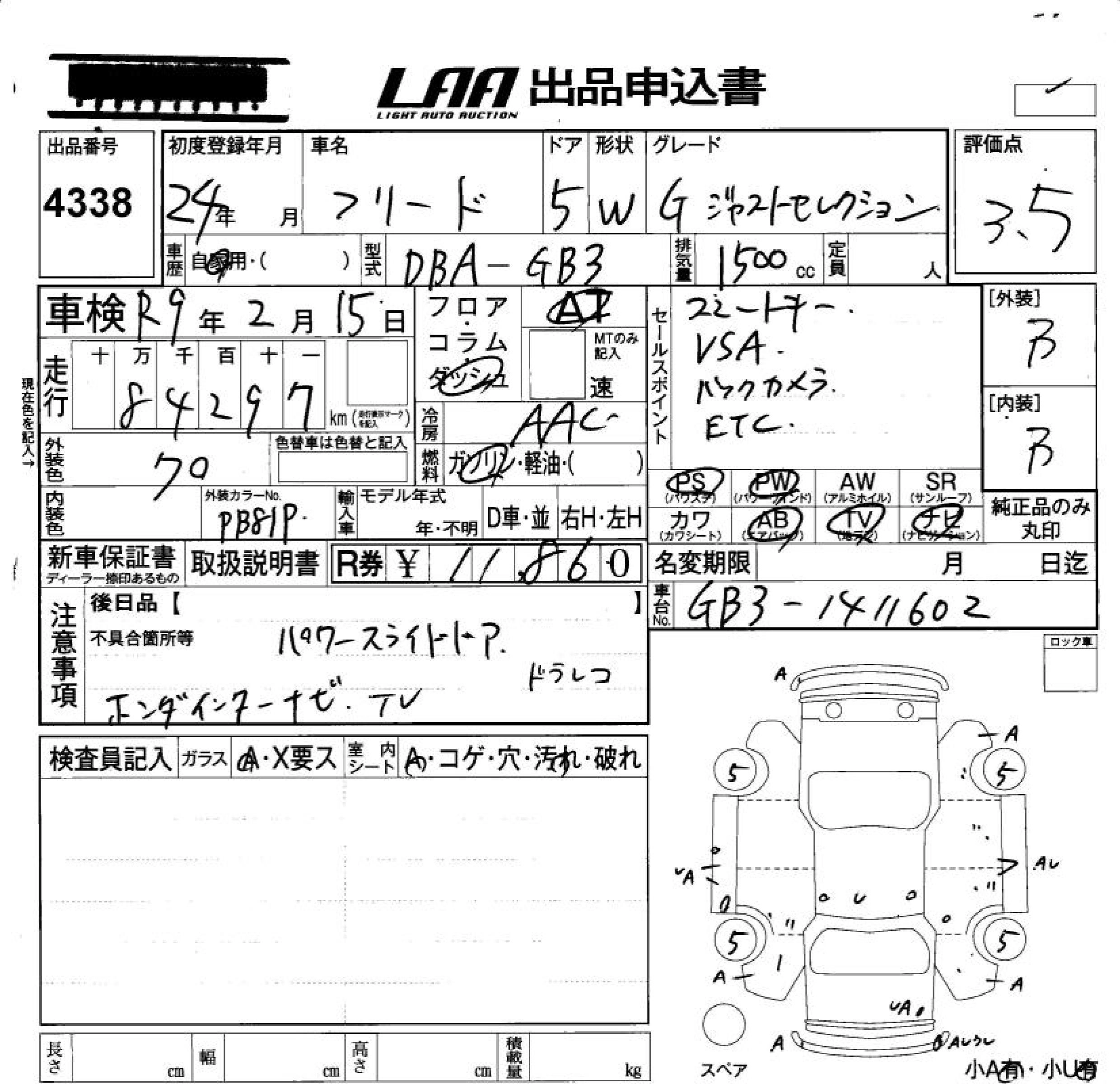 | G JUST SELECTION | DBA-GB3 | L15A | FF | CVT | 1496cc | 118ps(87kW)/6600rpm | AИ-92 | 1 850 000 | |