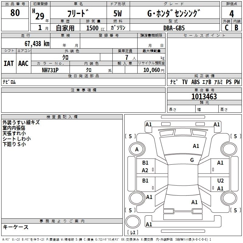 | G HONDA SENSING | DBA-GB5 | L15B | FF | CVT | 1496cc | 131ps(96kW)/6600rpm | AИ-92 | 2 100 000 | |