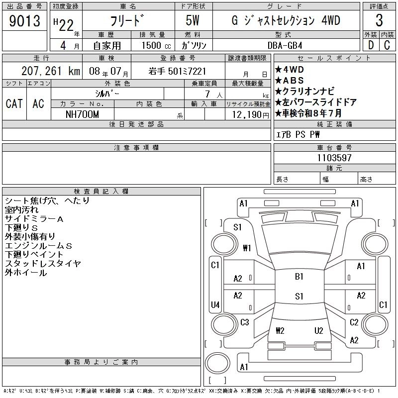 | G AERO | DBA-GB3 | L15A | FF | CVT | 1496cc | 118ps(87kW)/6600rpm | AИ-92 | 2 013 000 | |
