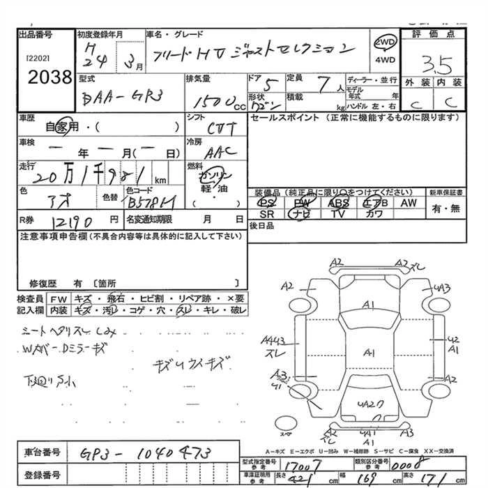 | G JUST SELECTION | DBA-GB3 | L15A | FF | CVT | 1496cc | 118ps(87kW)/6600rpm | AИ-92 | 1 900 000 | |