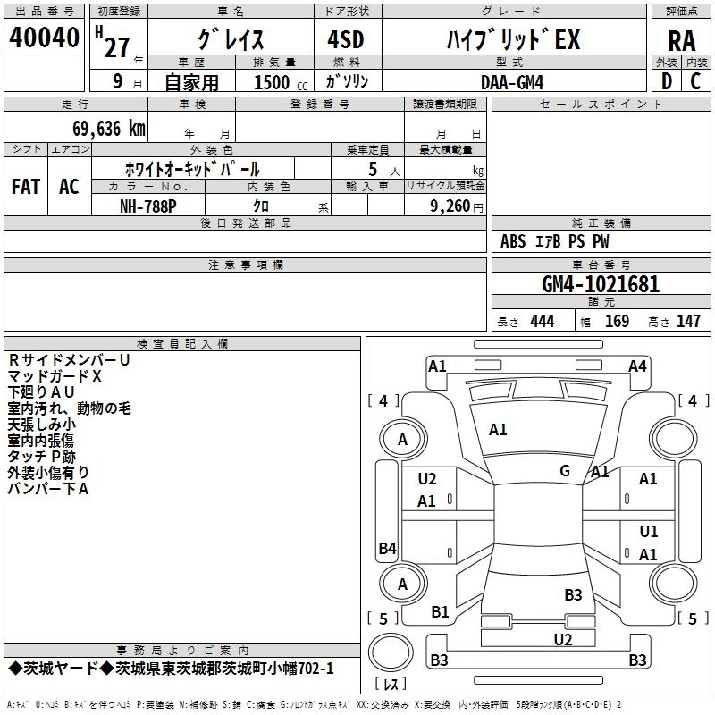 HONDA GRACE 2015 г., лот № 40040