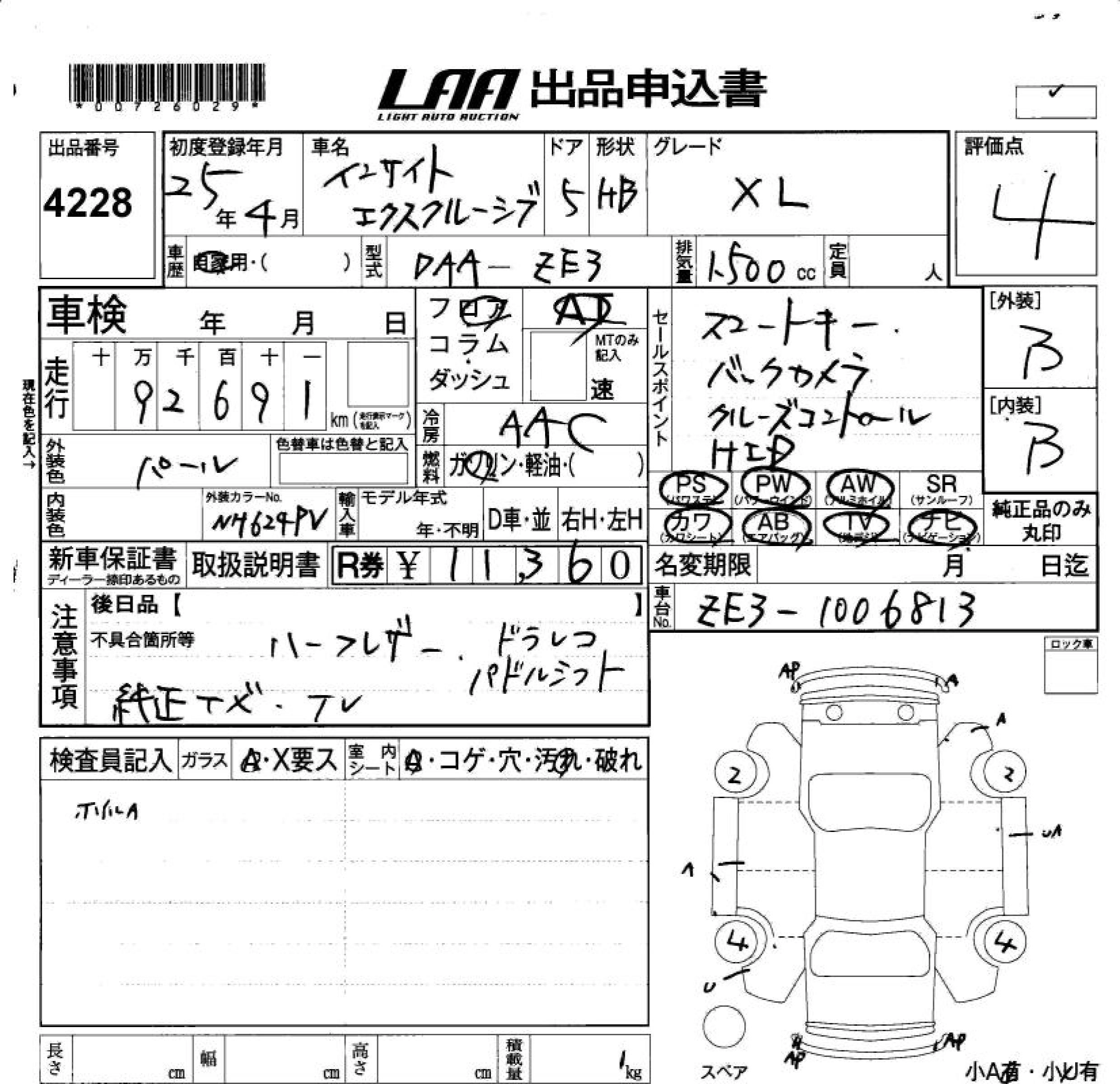 | XL | DAA-ZE3 | LEA | FF | CVT | 1496cc | 111ps(82kW)/6000rpm | AИ-92 | 2 250 000 | |