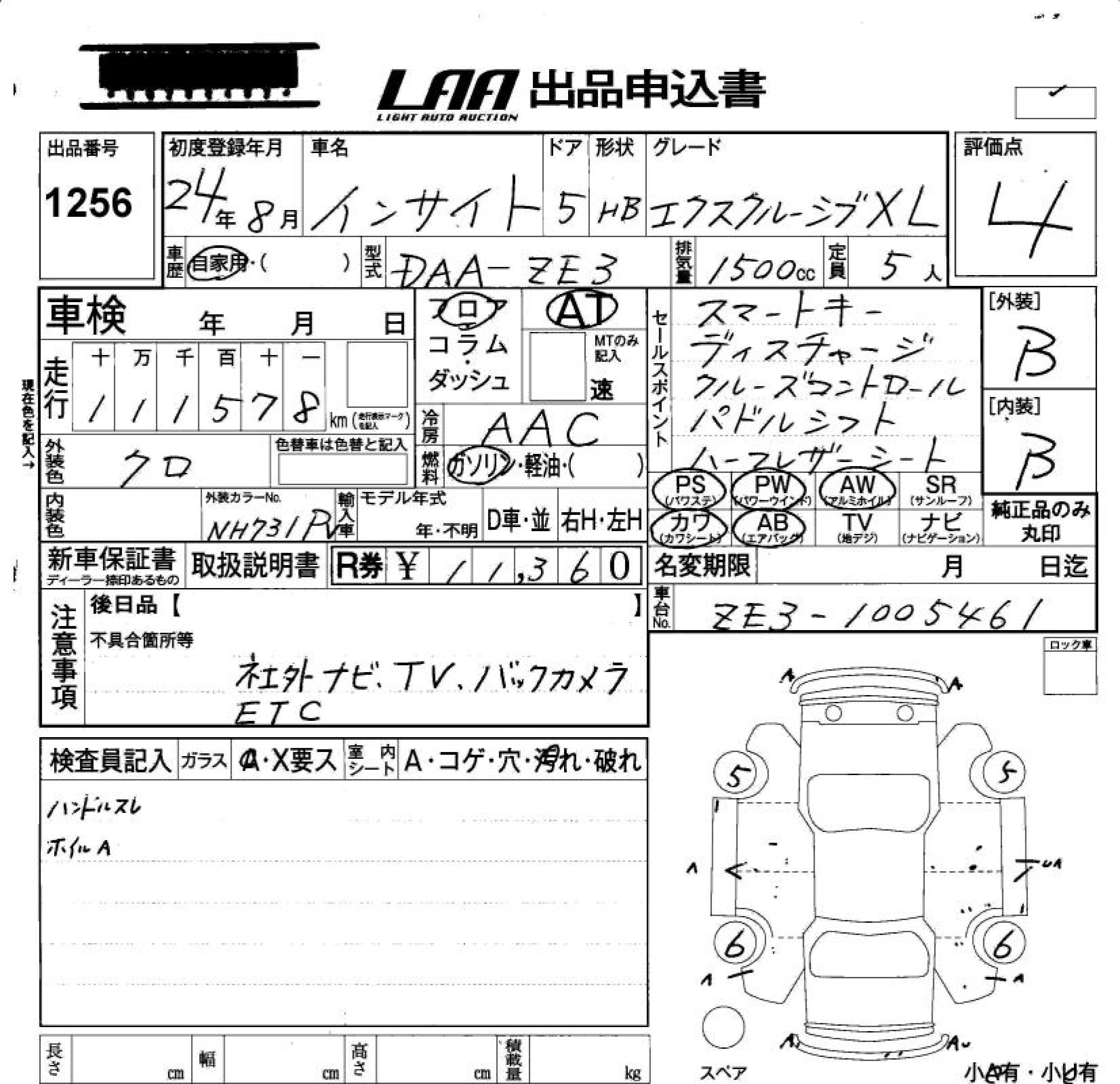 HONDA INSIGHT EXCLUSIVE 2012 г., лот № 1256