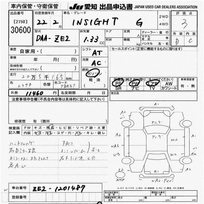 HONDA INSIGHT 2010 г., лот № 30600