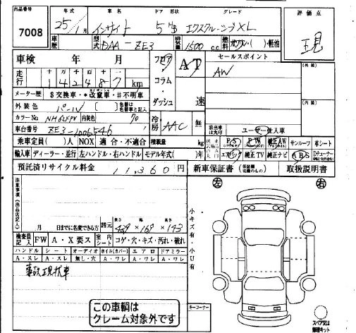 Статус не продан Лот 7008 Аукцион IAA Osaka Дата аукциона 25.03.2026
