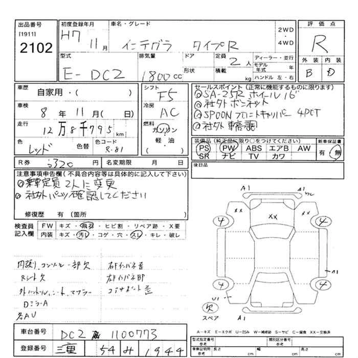 | SPORTS LIMITED | E-DC2 | B18C | FF | 5MT | 1797cc | 180ps(132kW)/7600rpm | AИ-95 | 1 748 000 | |
