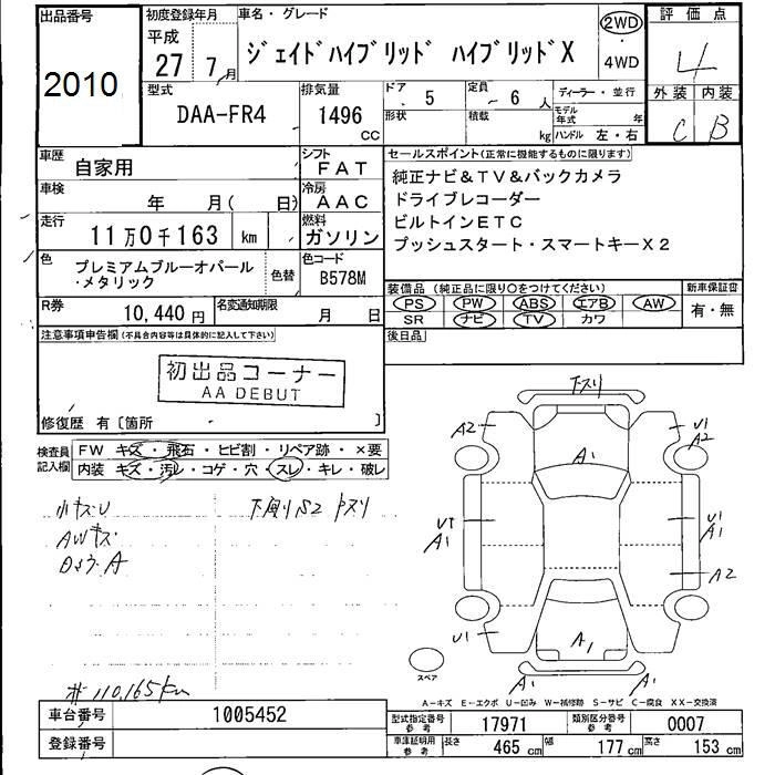 | RS | DBA-FR5 | L15B | FF | CVT | 1496cc | 150ps(110kW)/5500rpm | AИ-92 | 2 530 000 |