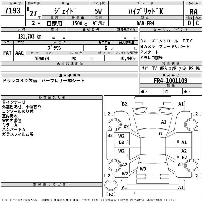 | RS | DBA-FR5 | L15B | FF | CVT | 1496cc | 150ps(110kW)/5500rpm | AИ-92 | 2 530 000 |
