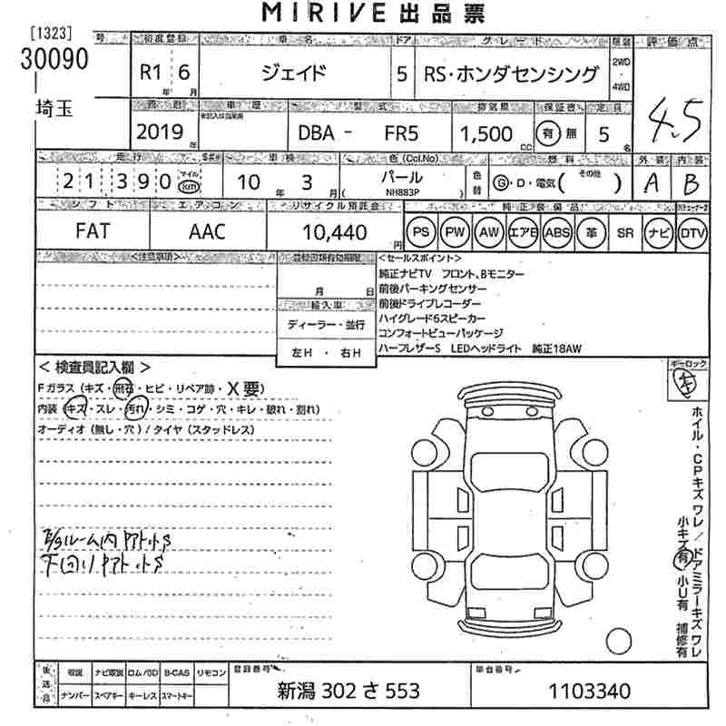 Статус не продан Лот 30090 Аукцион MIRIVE Saitama Дата аукциона 25.03.2026