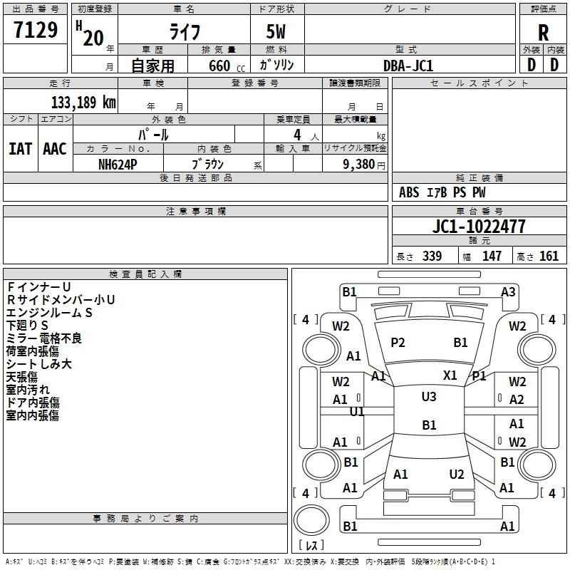 | C | DBA-JC1 | P07A | FF | 4AT | 658cc | 52ps(38kW)/7100rpm | AИ-92 | 945 000 | |