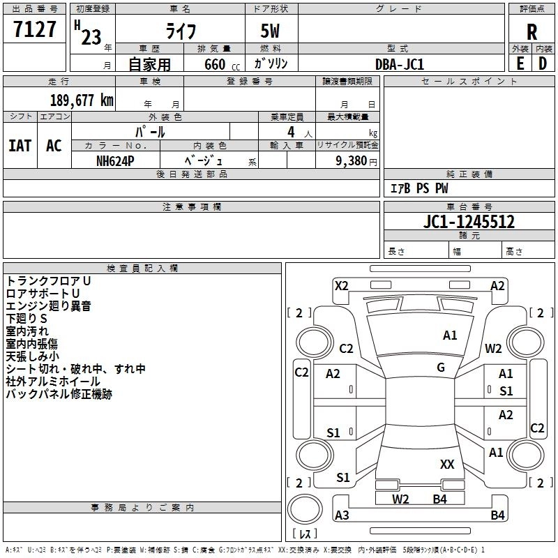 G SPECIAL EDITION HID SMART SPECIAL DBA-JC1 P07A FF 4AT 658cc 52ps(38kW)/7100rpm AИ-92 1 180 000