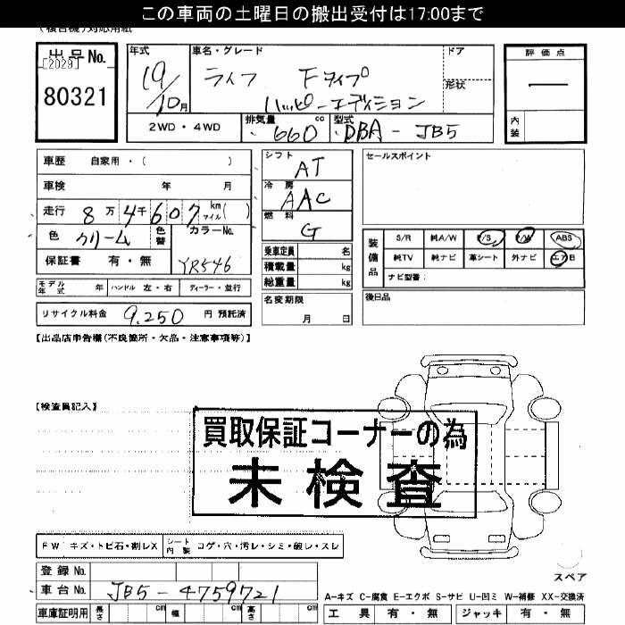 | FINE SPECIAL | DBA-JB5 | P07A | FF | 4AT | 658cc | 52ps(38kW)/6700rpm | AИ-92 | 899 850 | |