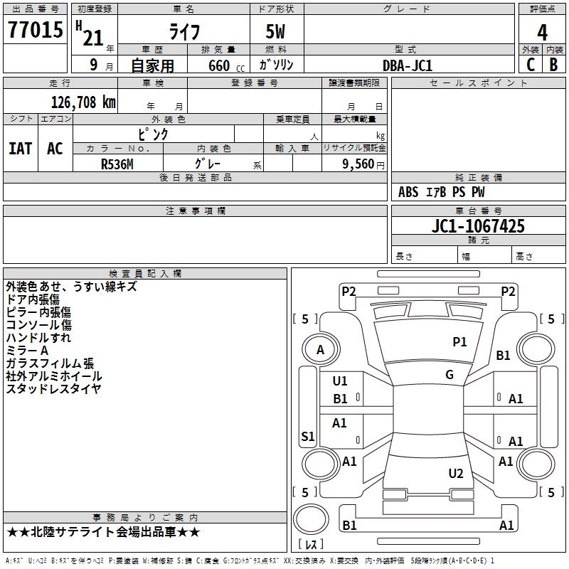 | C | DBA-JC1 | P07A | FF | 4AT | 658cc | 52ps(38kW)/7100rpm | AИ-92 | 945 000 | |