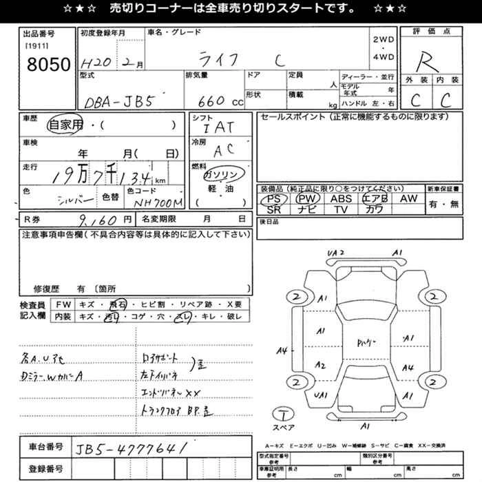 | C | DBA-JC1 | P07A | FF | 4AT | 658cc | 52ps(38kW)/7100rpm | AИ-92 | 945 000 | |