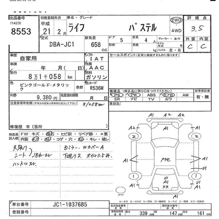 | PASTEL | DBA-JC1 | P07A | FF | 4AT | 658cc | 52ps(38kW)/7100rpm | AИ-92 | 1 150 000 | |