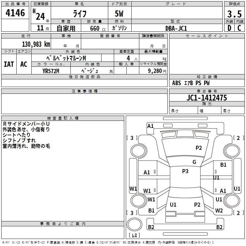 | C | DBA-JC1 | P07A | FF | 4AT | 658cc | 52ps(38kW)/7100rpm | AИ-92 | 980 000 | |