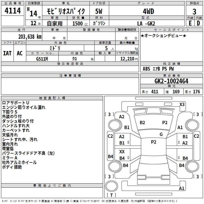 | A | LA-GK2 | L15A | Full-time 4WD | CVT | 1496cc | 110ps(81kW)/5800rpm | AИ-92 | 1 579 000 | |