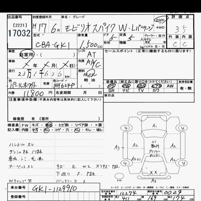| AU | DBA-GK1 | L15A | FF | CVT | 1496cc | 110ps(81kW)/5800rpm | AИ-92 | 1 522 500 |