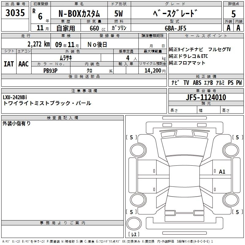 HONDA N BOX CUSTOM 2024 г., лот № 3035