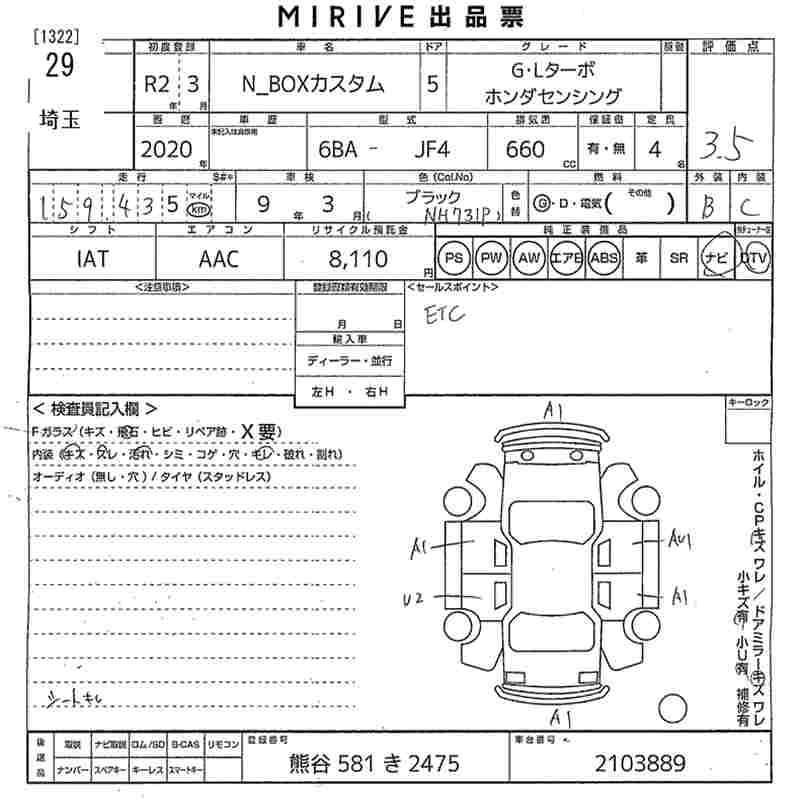 Статус выставлен на аукцион Лот 29 Аукцион MIRIVE Saitama Дата аукциона 18.03.2026