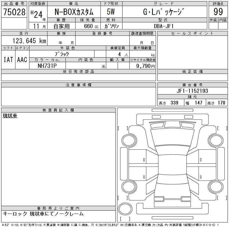 HONDA N BOX CUSTOM 2012 г., лот № 75028