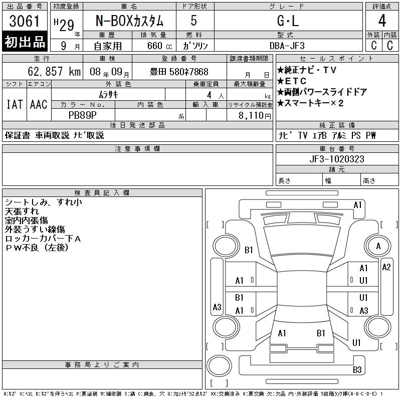 HONDA N BOX CUSTOM 2017 г., лот № 3061