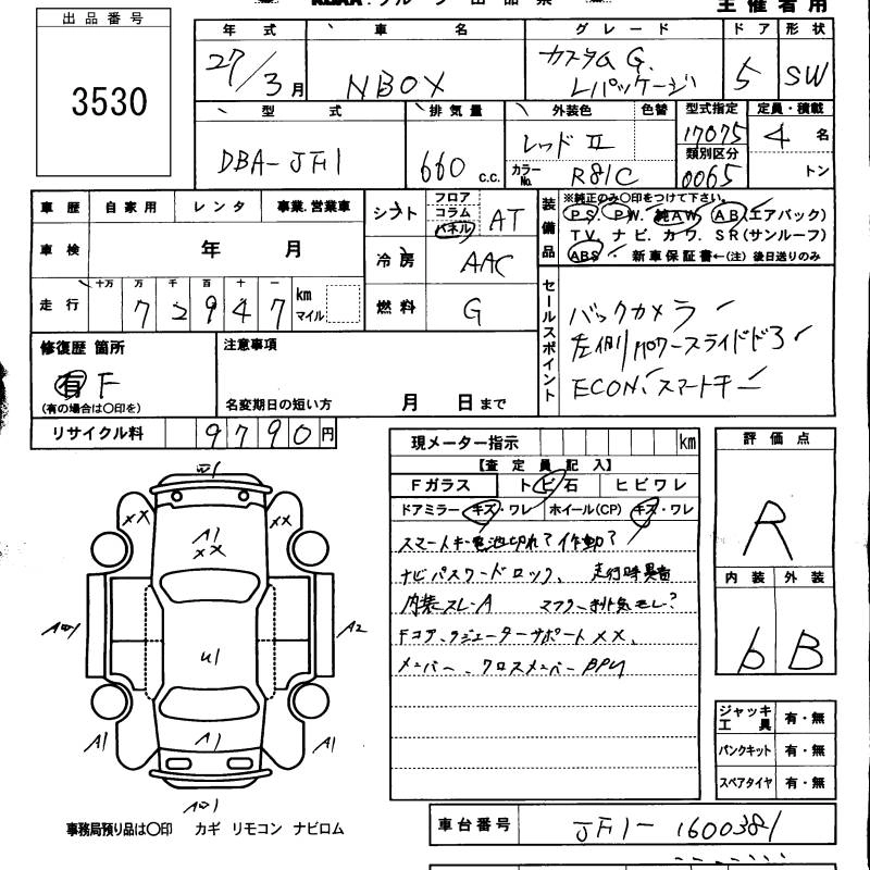 HONDA N BOX CUSTOM 2015 г., лот № 3530