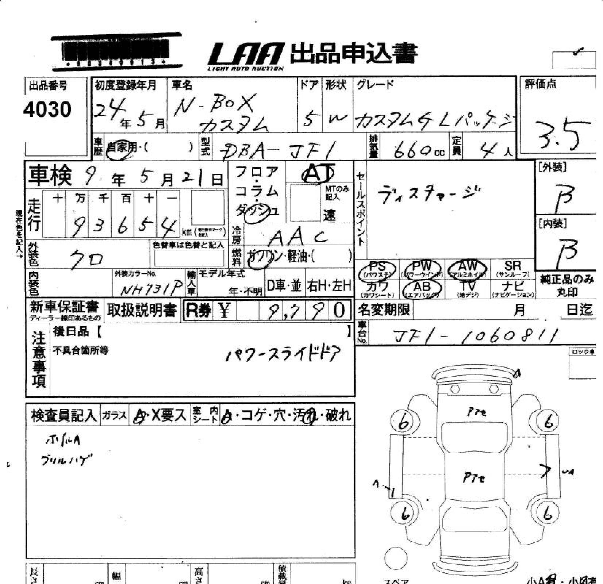HONDA N BOX CUSTOM 2012 г., лот № 4030