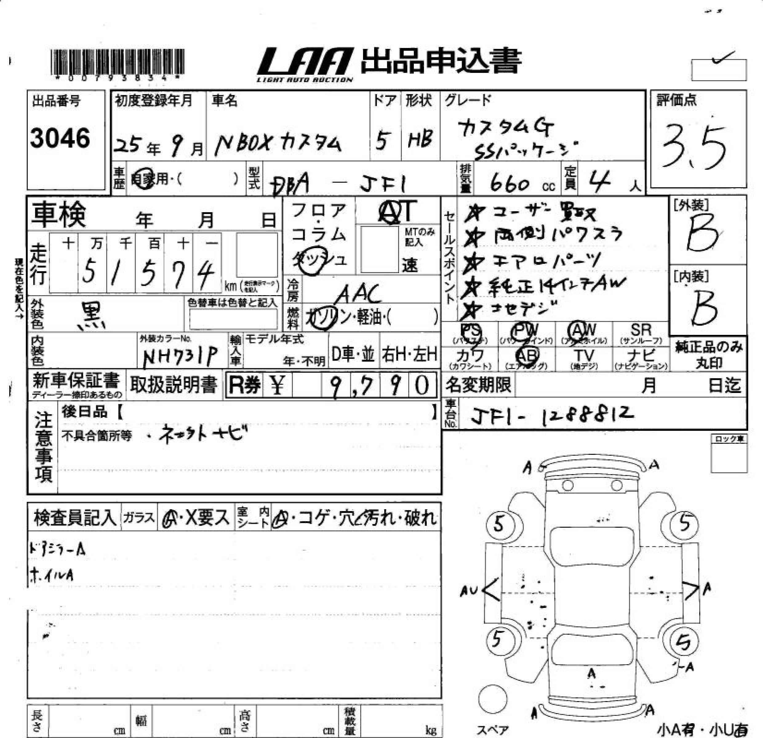 HONDA N BOX CUSTOM 2013 г., лот № 3046