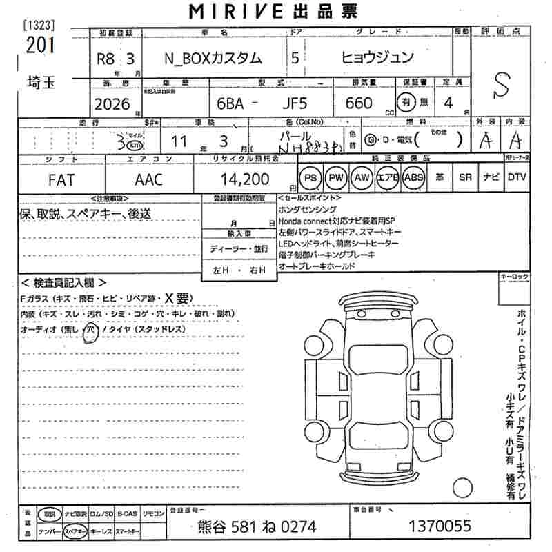 HONDA N BOX CUSTOM 2026 г., лот № 201