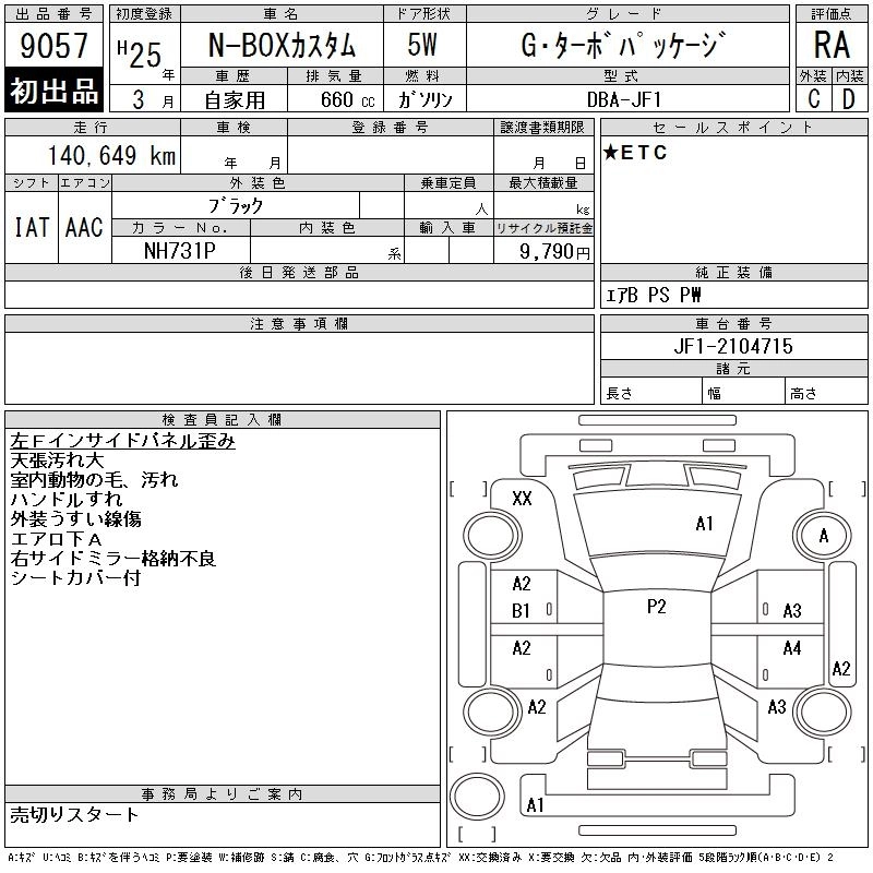 HONDA N BOX CUSTOM 2013 г., лот № 9057