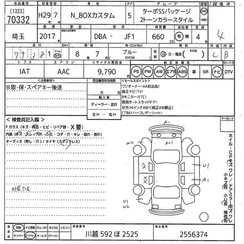 HONDA N BOX CUSTOM 2017 г., лот № 70332